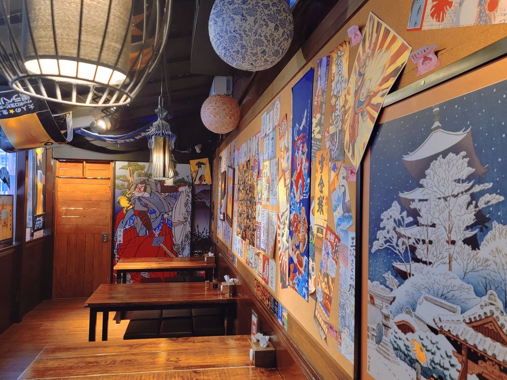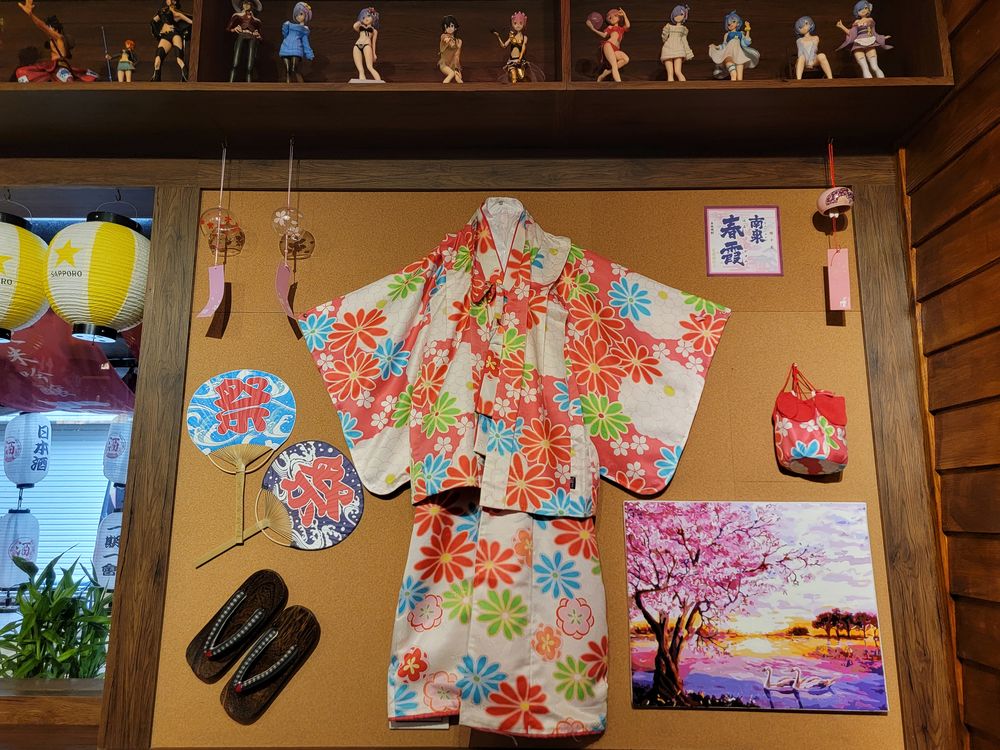 到餐廳內從日本直送的各種大型公仔、旗幟、和服、日本神社祈福擺飾、海報......完美復刻日本居酒屋濃濃的和風情調,從裝潢布置、美食美酒,處處可見店家的用心。