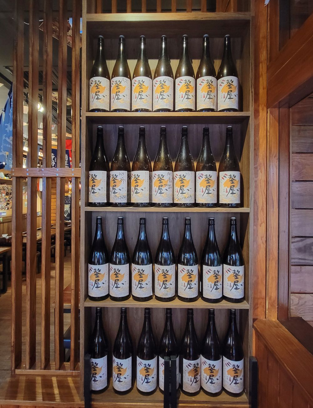 一進門就看到放滿超大瓶清酒的木架,令人熱血沸騰啊!上面寫著大大的「鏊屋」兩字,老闆也太有心了,特別和清酒商合作,推出【鏊屋】專屬清酒,聽親切熱情的店員美眉說,還有一款最新的「鏊屋」清酒即將推出。