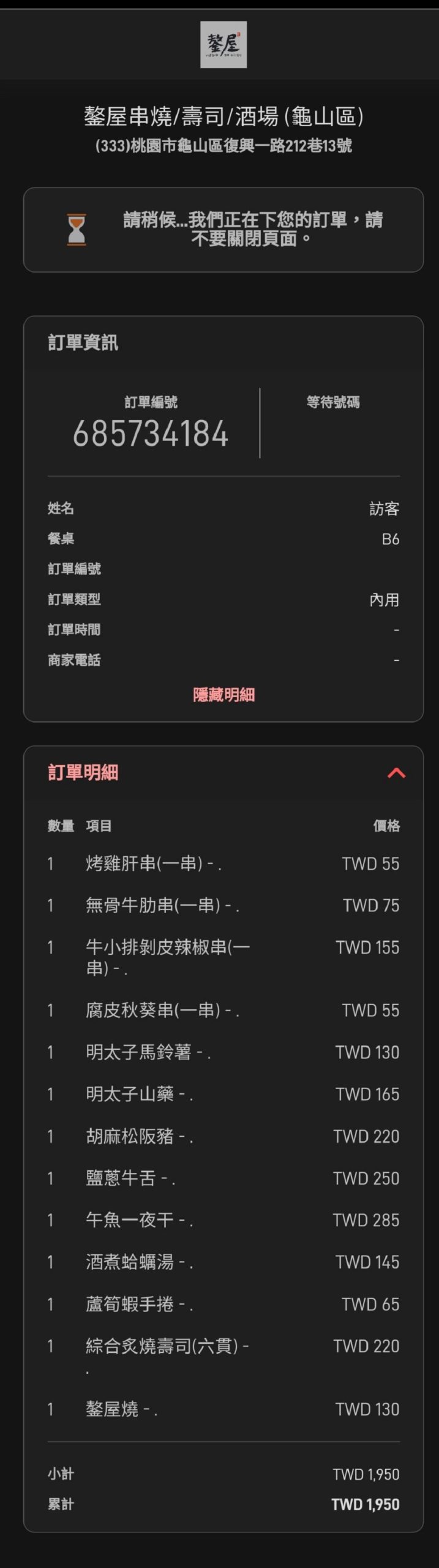 「鏊屋」點餐500元以上可掃描QR Code,透過e化電子點餐,除了高效率,還可隨時上去加點或查看所點菜單。