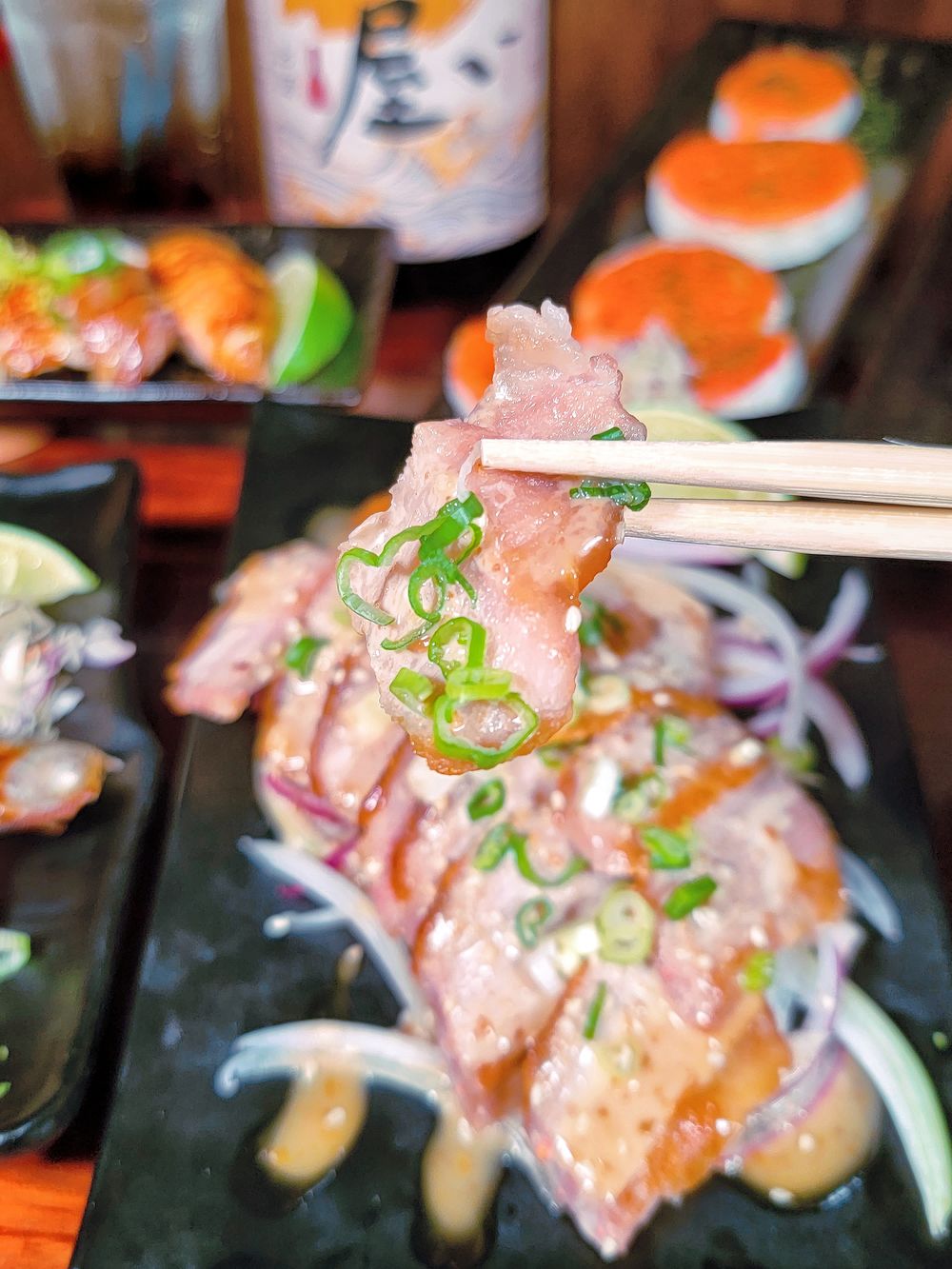 香濃的胡麻搭配口感香嫩帶有鮮脆的松阪豬根本絕配!太好吃了,具有嚼感的松阪豬肉質細膩香甜,佐上胡麻醬、洋蔥、青蔥就好好味,擠點檸檬汁,增添幾許酸香爽!